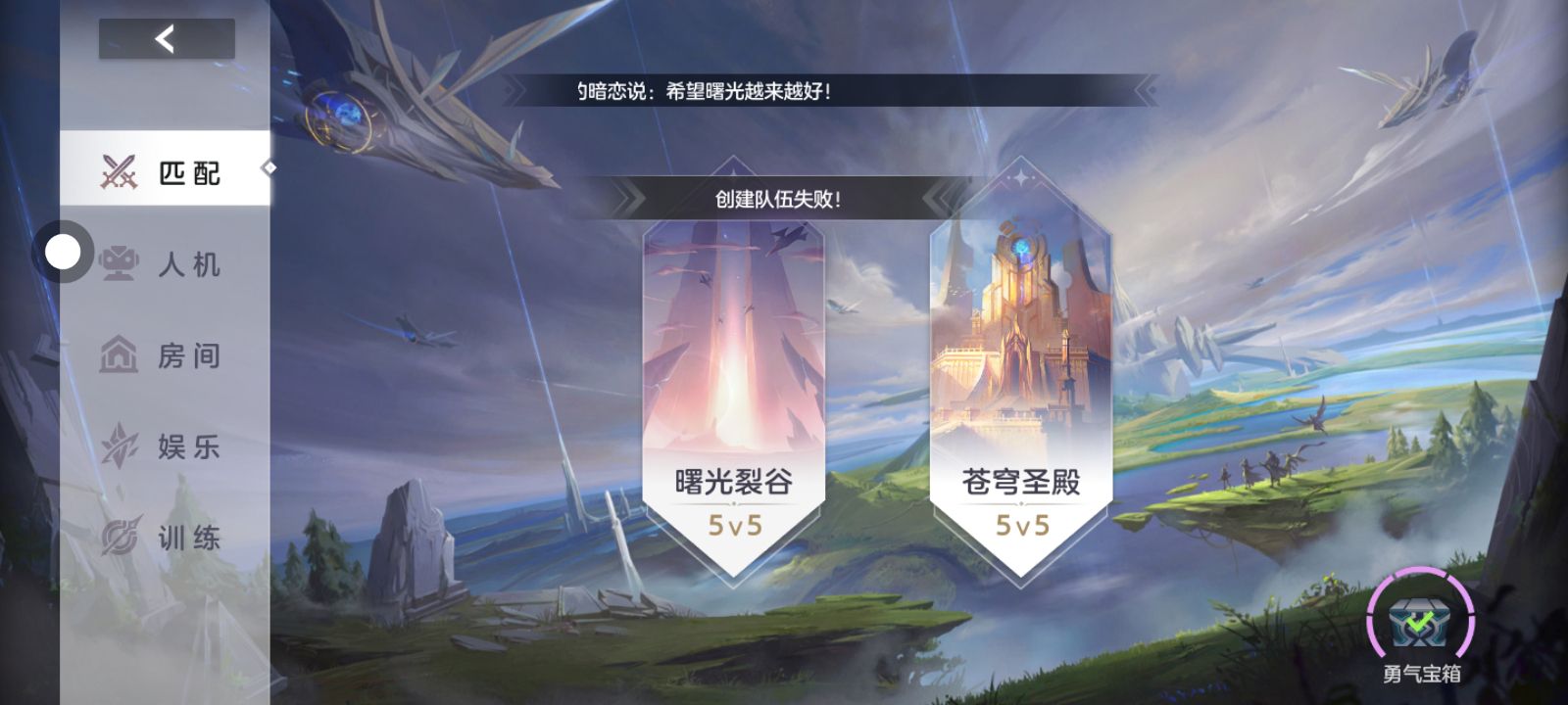 想打把匹配,却显示创建队伍失败,玩不了啊