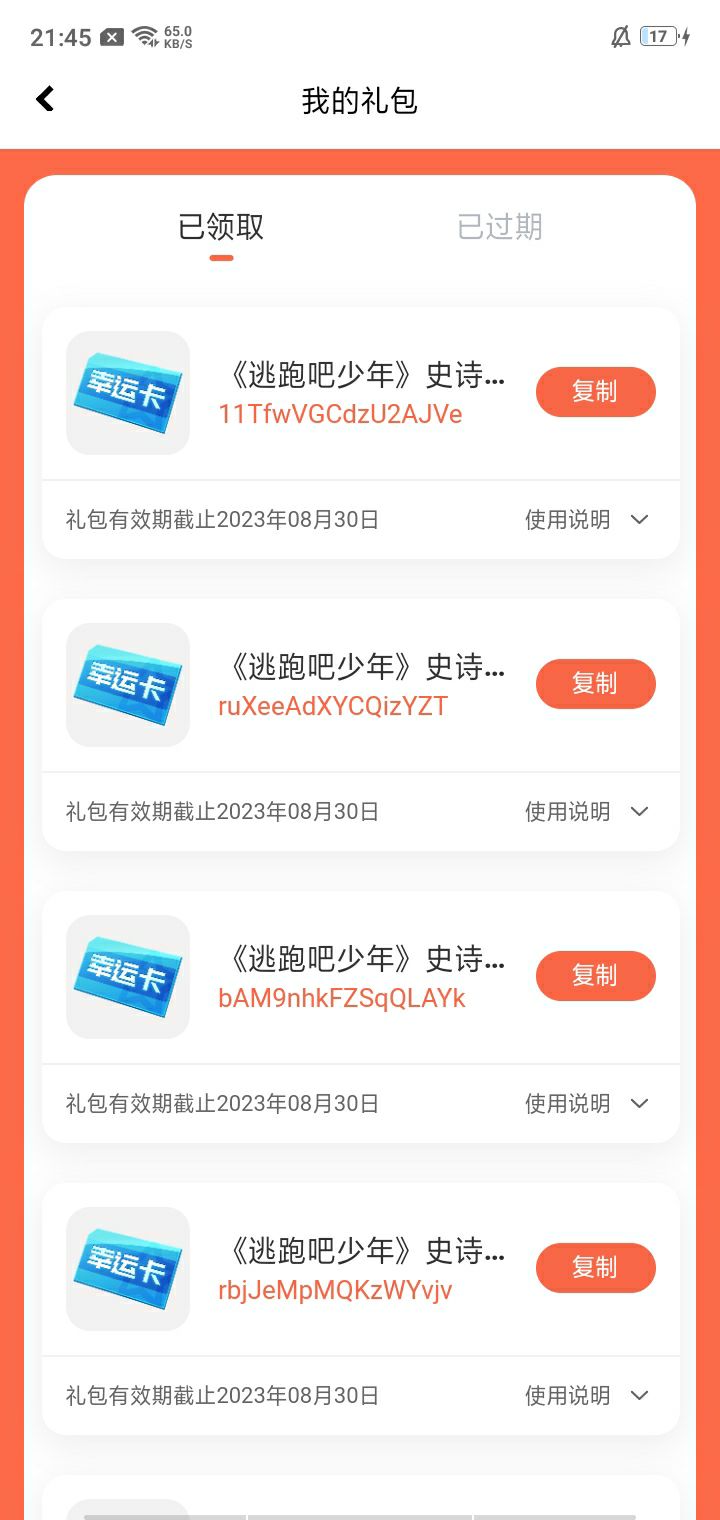 一堆幸运卡,用屁有些用过有些没用过,谁爱要拿走。烦死去还删除不了用过的,而且新嘞会刷在用过的前面或后面无语死了