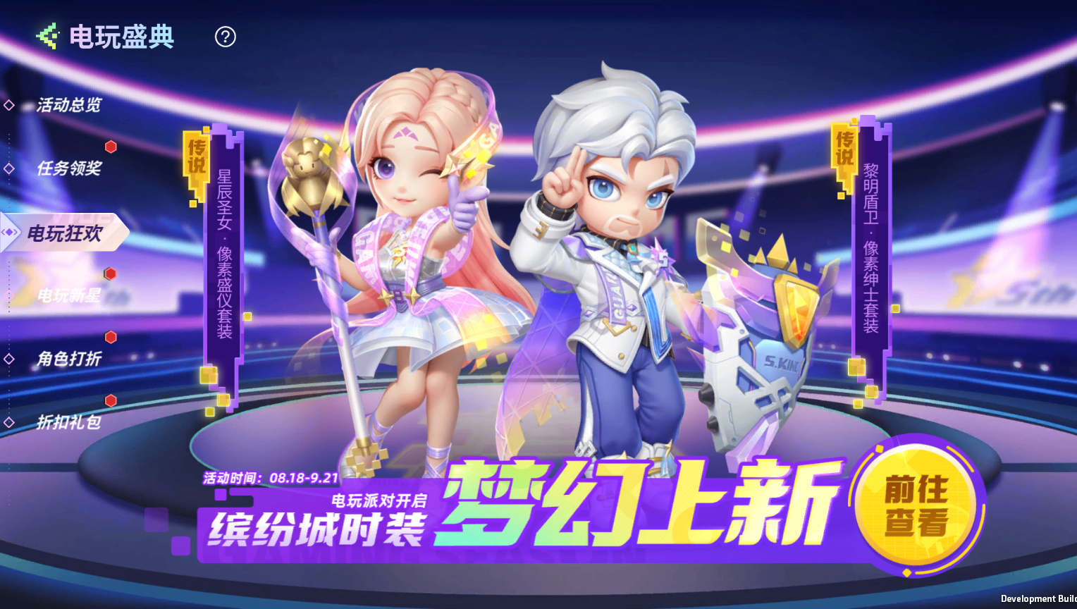 一位是华贵大方的翩翩绅士,一位是璀璨夺目的盛典明星,谢尔德和莉安娜向我们展示了他们的另一面——【黎明盾卫·像素绅士】(传说)和【星辰圣女·像素盛仪】(传说),小学妹的注意力也全部被他们吸引走啦╰(*°▽°*)╯