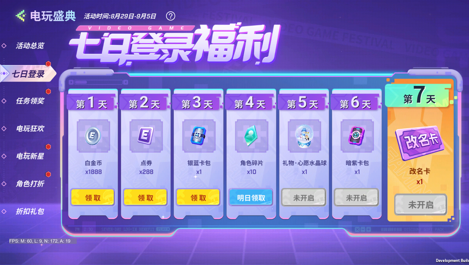 盛典开启期间,少年们只需累计登录7天即可解锁心愿水晶球和改名卡!还有暗紫卡包、白金币、点券等多重奖励等你来领~快快上线领取奖励,把这份礼物送给你的开黑伙伴吧,诶嘿!