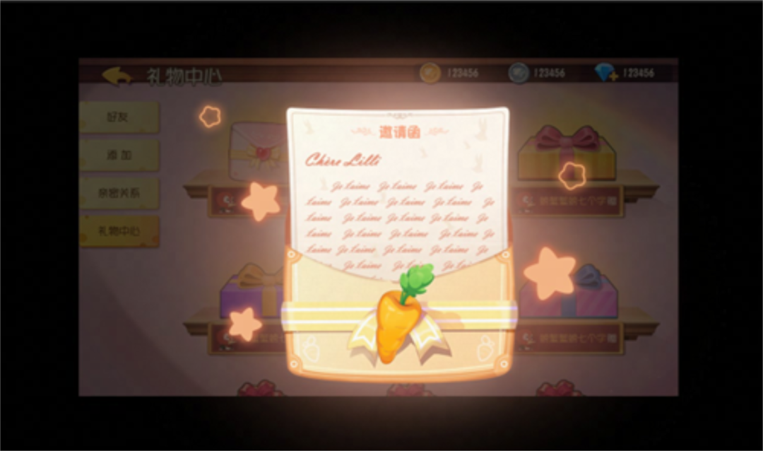 在以上可兑换奖励中,人气礼物神秘来信似乎有些不同寻常呢~精美信封上装饰着胡萝卜图案,打开后赫然呈现出一封神秘来信,小不点猜测这或许是某位神秘人物故意留下的。聪明的小伙伴们,你们是否通过信封上的线索猜出了这位神秘人物呢?
