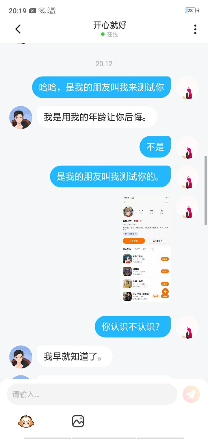 宝宝,当你看到这张图时,你不要误会,这是我帮别人测试的,你别误会嗯我说的那个嗯,其实我想更深入的了解他,然后呢跟我的朋友说,最后我真的跟他说了事实,你不信的话,我给你看还有你们不要说我z了