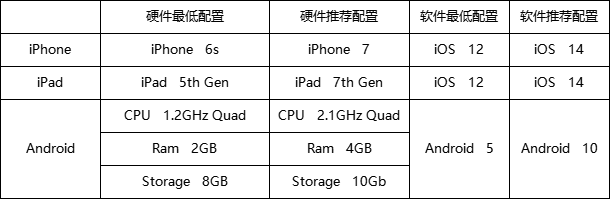 移动端设备要求如下:
