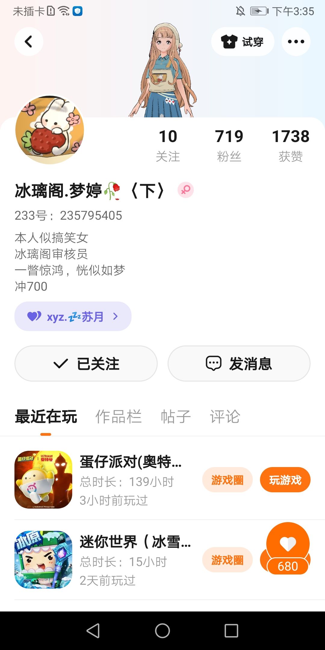 他/她送了我一个号,真的很好,可以找她私聊,但是得先关🐷她