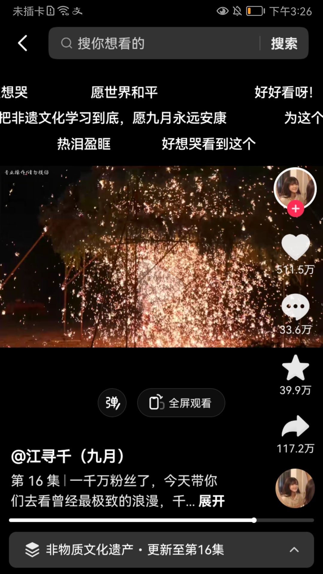 中国非物质文化遗产打铁花,原视频真的超级震撼,建议大家去看看,美爆了!