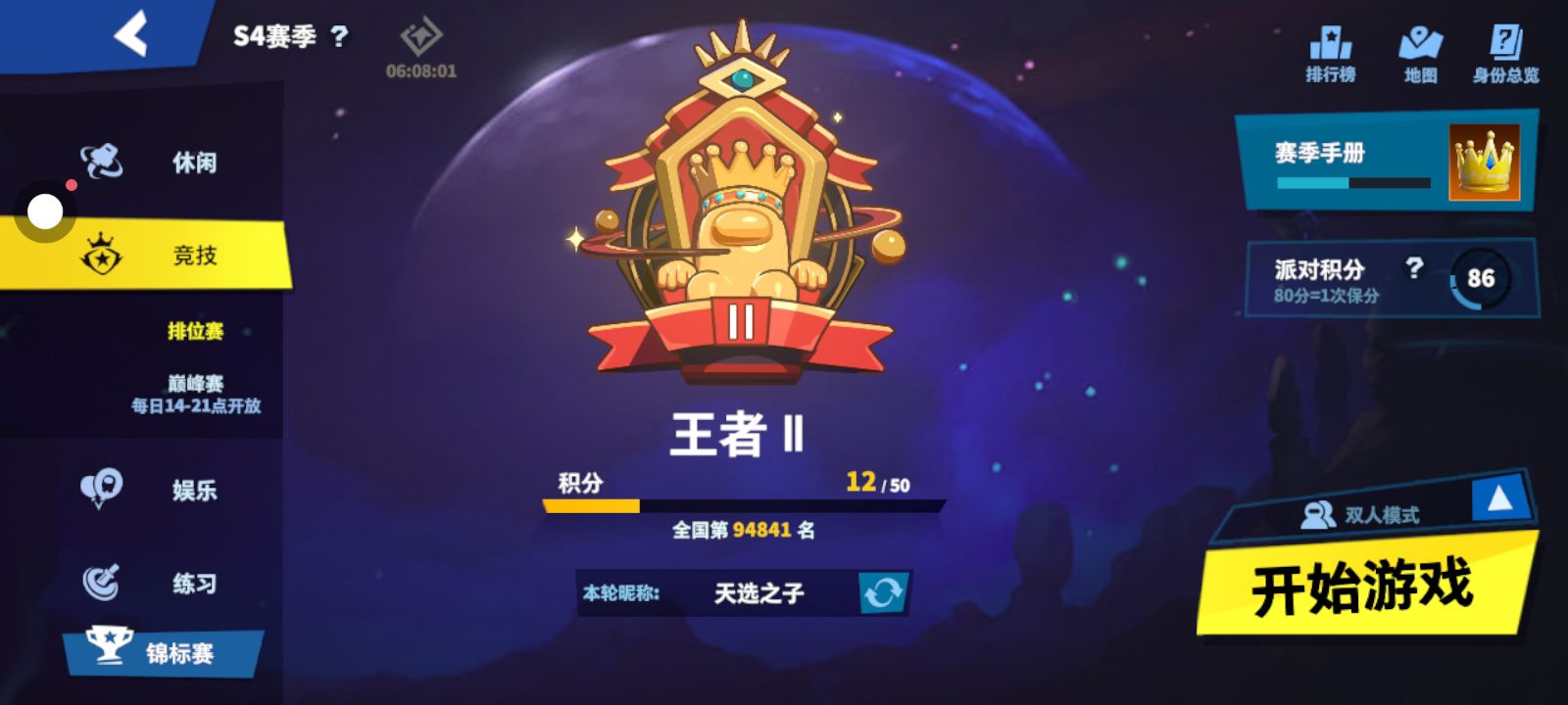 玩了半天发现从钻石上了王者