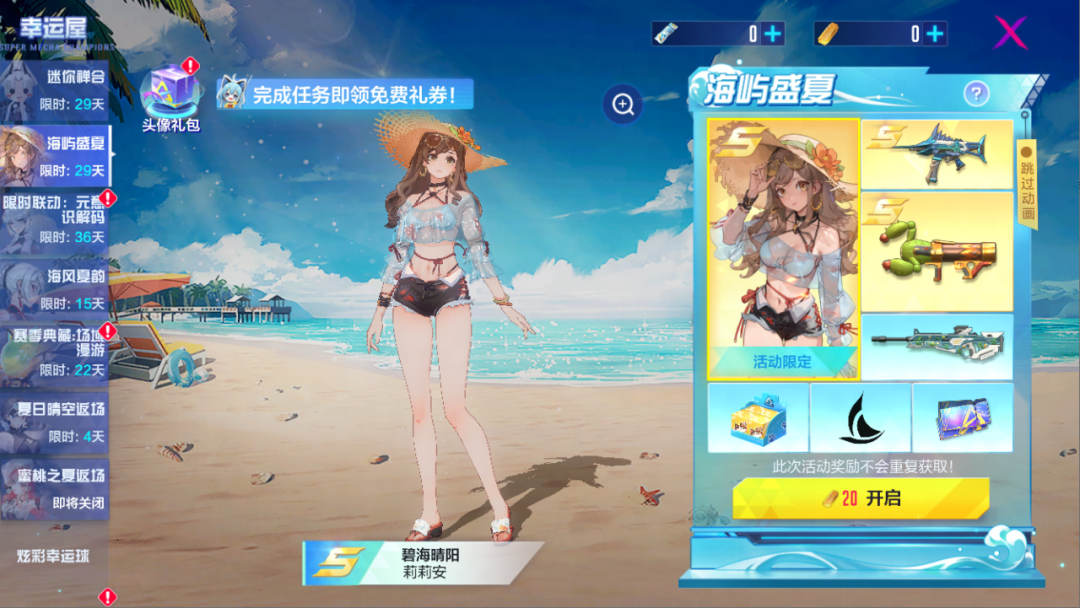 莉莉安S级泳装外观“碧海晴阳”,战术冲锋枪S级外观“剑鱼冲击”,电浆飞弹S级外观“沙漠绿洲”全新上线!