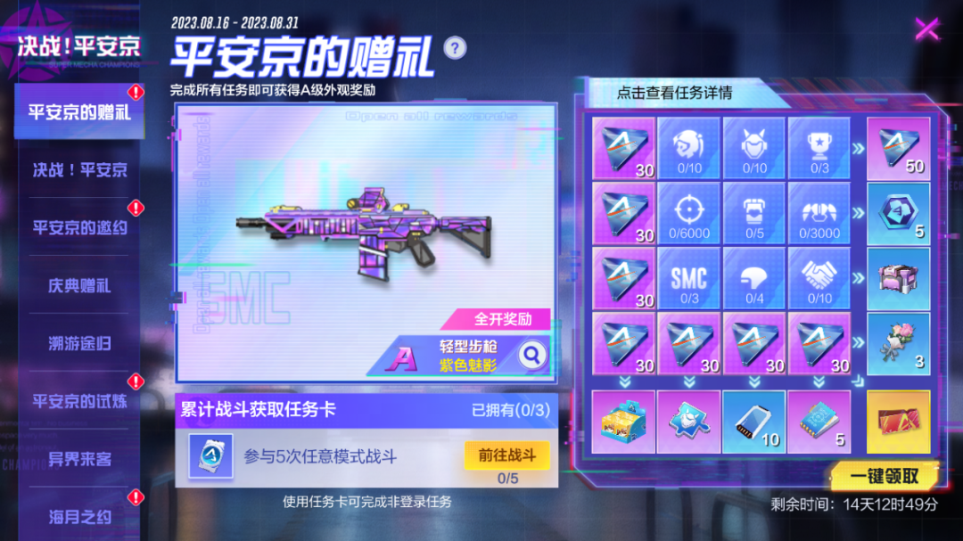 完成任务达成连线,即可获得轻型步枪A级外观“紫色魅影”等多样奖励!