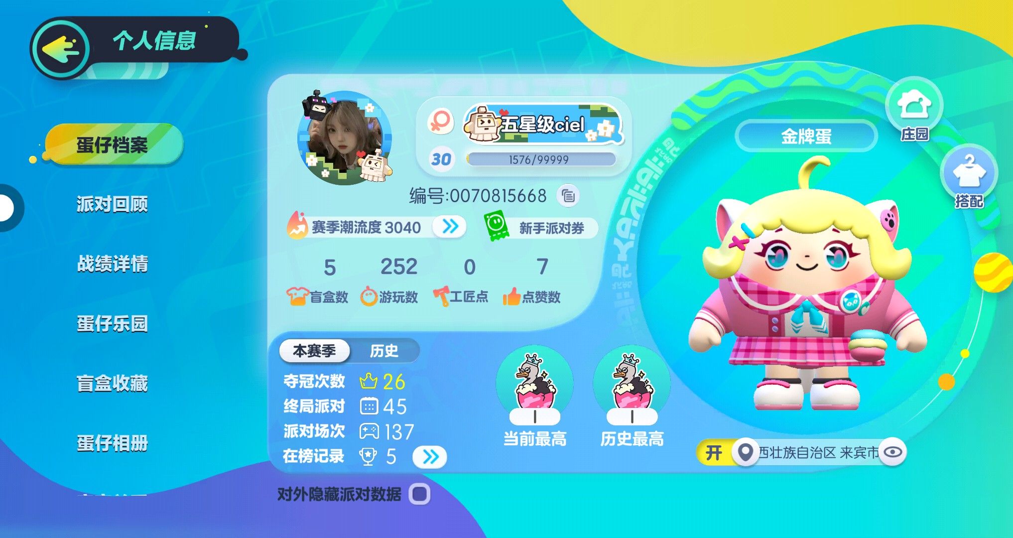 他是我在蛋仔第一个和我玩的,可是他退游了。