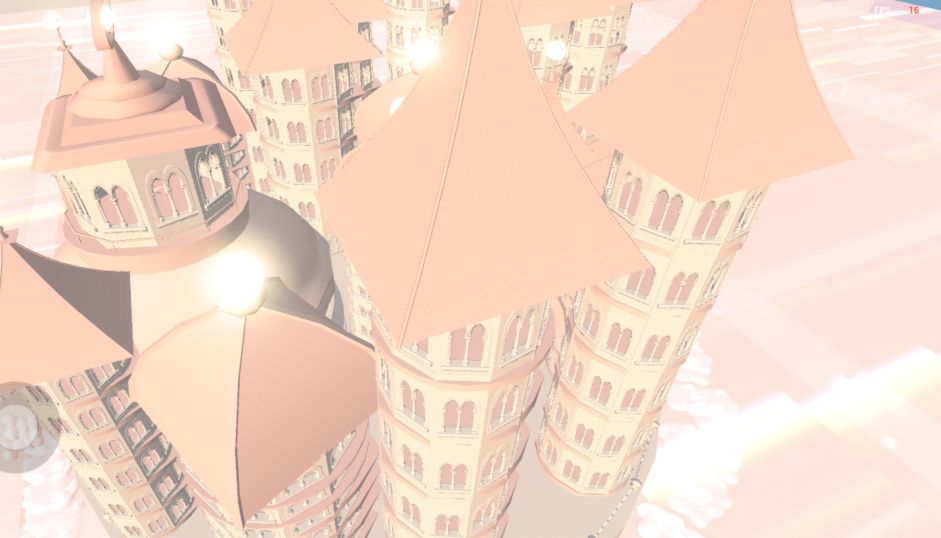 这是一款名为十样锦的粉色系城堡新图,城堡造型梦幻别致,有着多座尖顶塔楼与带光环的圆顶主建筑,欢迎玩家前来游玩。