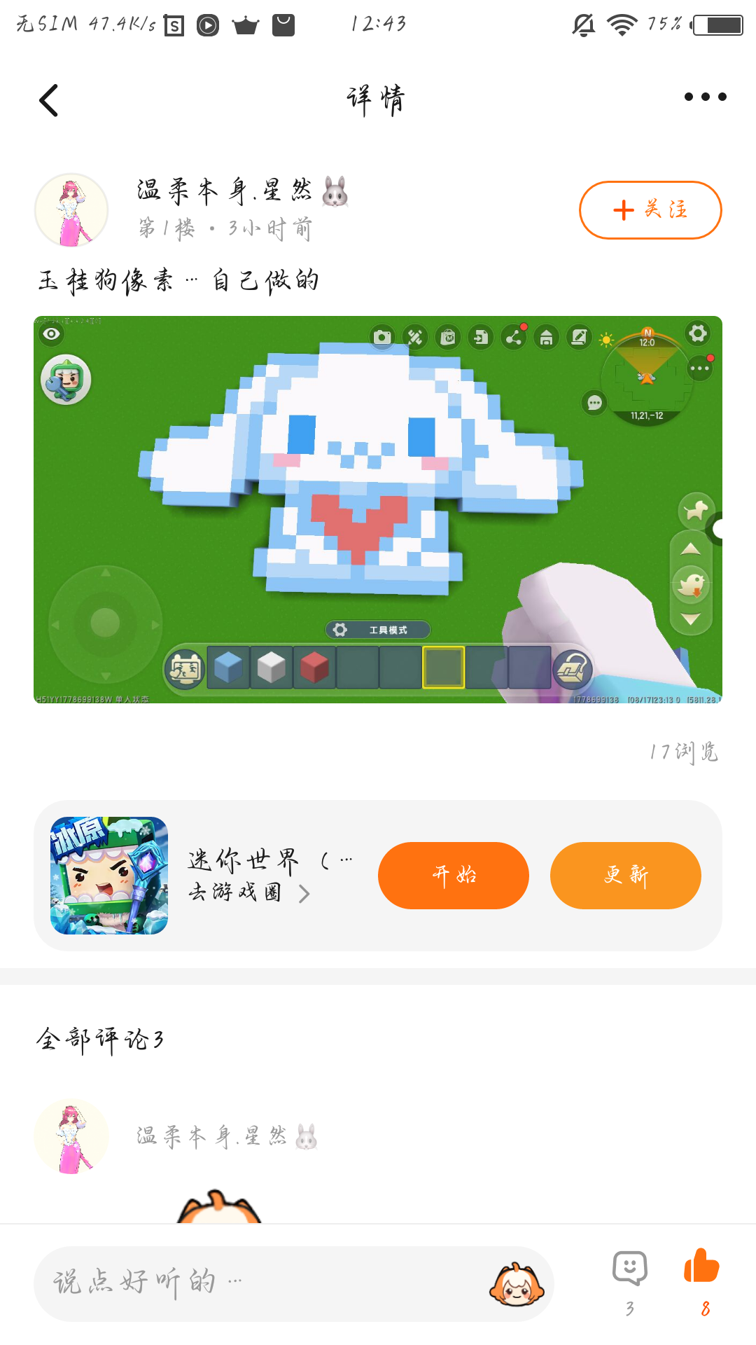 同时展示了三个房子,每个都很精美!!!第一个是库洛米配色的建筑,第三个是美乐蒂配色的建筑(不确定哈,作者看到了不是的话,说说我改‼️)阿黔个人喜欢中间的,有一种田园风的感觉,很闲逸!