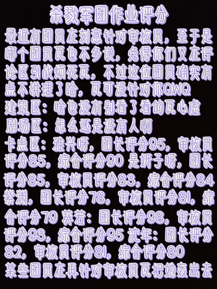 【杀戮军团】评分 【某些针对审核员的团员看过来】
