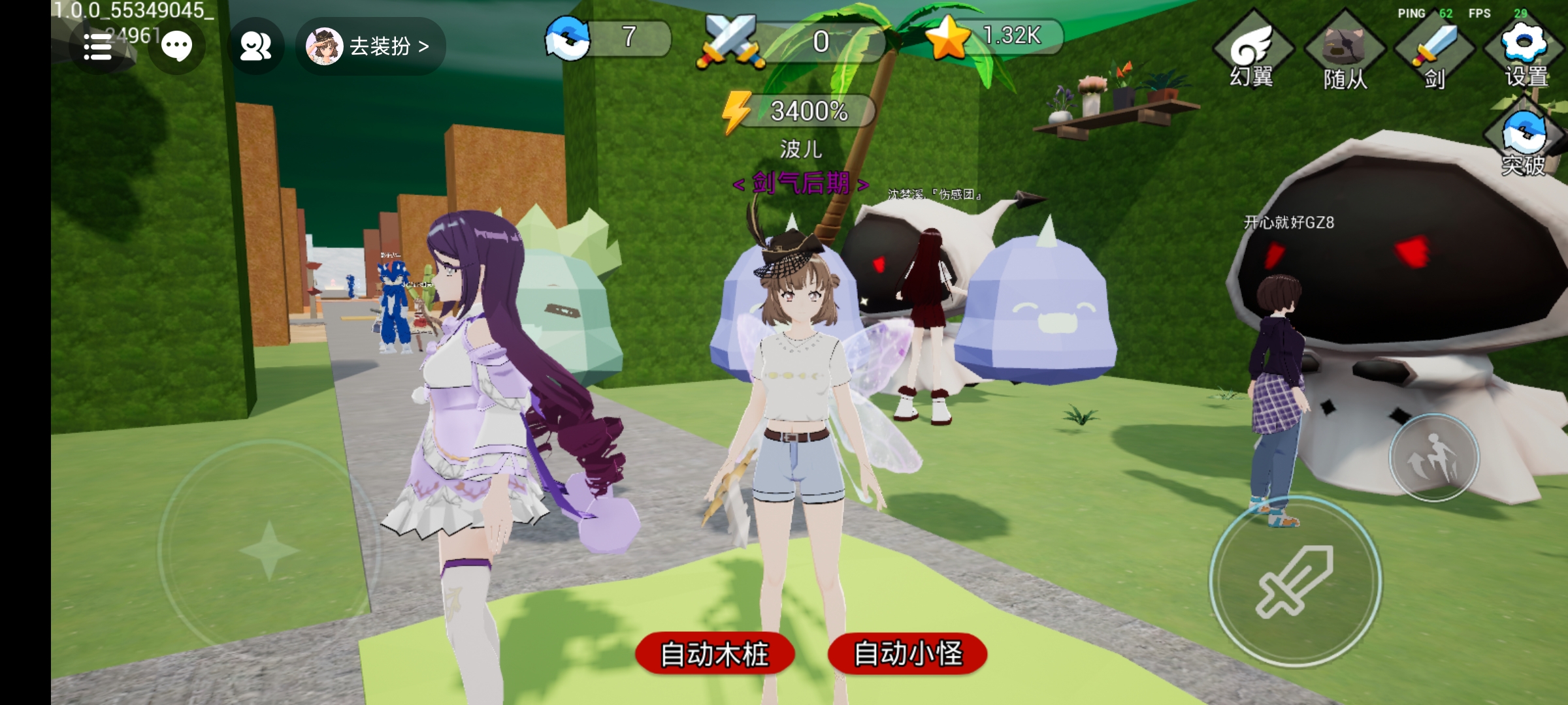 感谢各位玩家在游戏上线后对游戏的支持,期间我们收到了很多意见和反馈,并针对其中一些意见与反馈进行了调整,调整内容如下: 1. 房间人数上限调整:房间人数上限由原先的5人上调至15人,各位将能在房间中见到一起变强的伙伴; 2. 游戏场景调整:在先前的版本中,部分玩家通过攀爬小怪翻出了场景外侧,在这次的更新中问题得到了解决。 由于本次更新上调了房间人数,部分玩家可能会遇到卡顿问题,卡顿的玩家可以在游戏设置中将特效由开启改为关闭。 此外,有一些问题我们已经收到并在积极修复中。后续版本中也会有更多的玩法与活动内容上线,敬请期待~