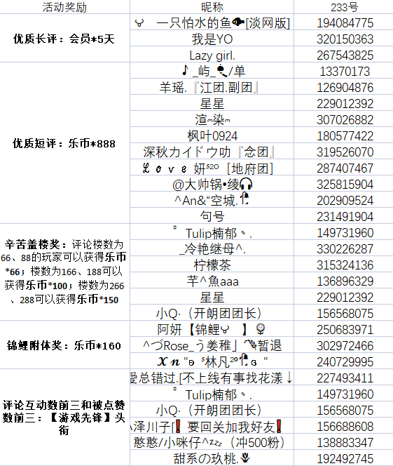 辛苦盖楼奖:本贴下,评论楼数为66、88的玩家可以获得乐币*66;评论楼数为166、188可以获得乐币*100;评论楼数为266、288可以获得乐币*150(不可重复获得,刷评将取消资格,并禁言/封号)