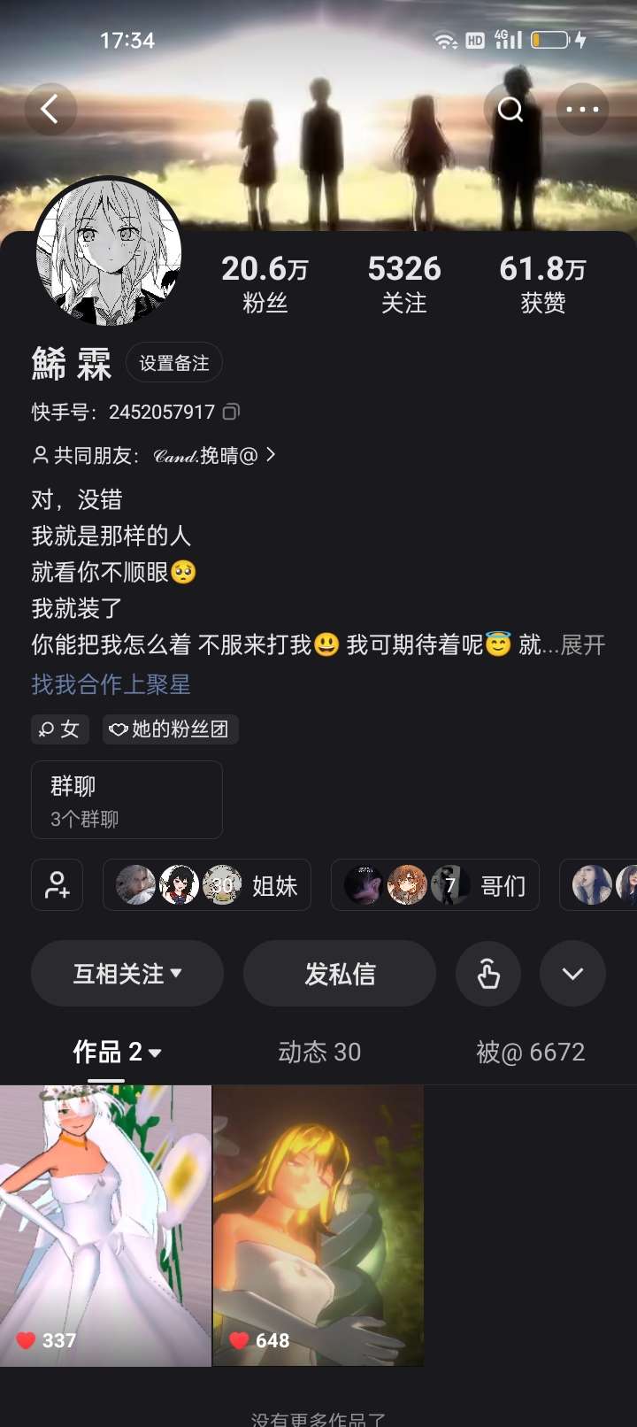 【娱乐】突然发现快手有一位20.6万的大佬关我了哎ᥬ🌝᭄ᥬ🌚᭄