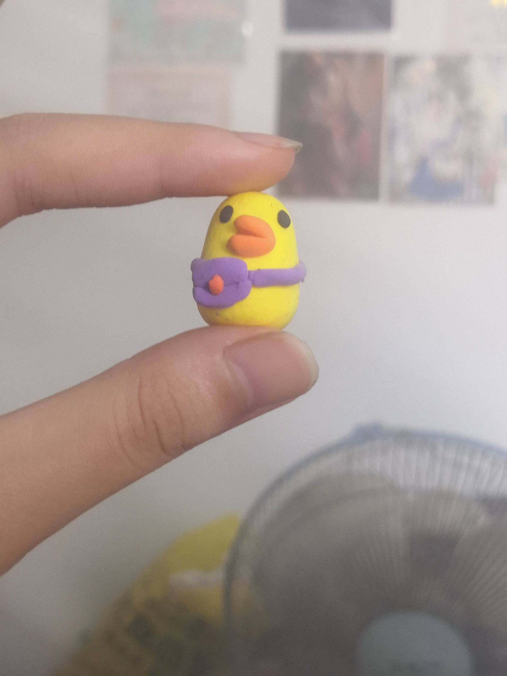 用粘粘土捏的小鸭子。