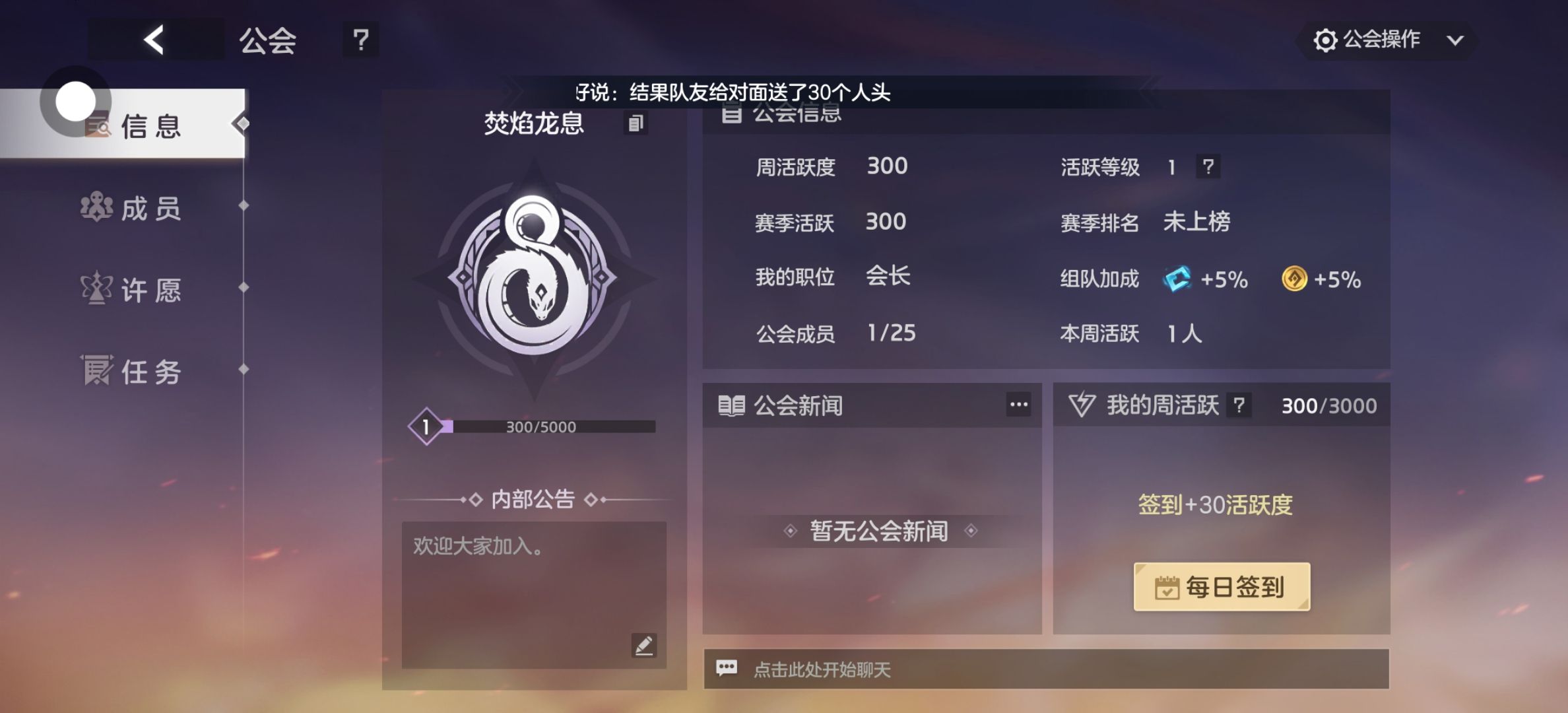 自己创建了个公会,希望大家加入