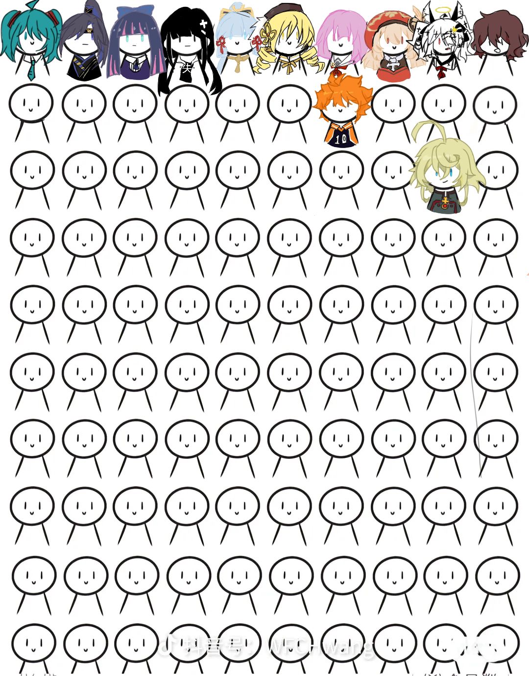 画好啦(*´I`*)由于位置原因所以并不是挨个排的(ㅇㅅㅇ❀)呜呜那个谭雅画了好多次还是有种说不上来的感觉○○(><)○○那个棕色头发的是哒宰没画完
