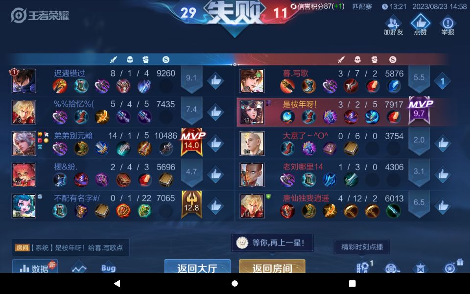 #本来我们家李信开局拿了几个人头,但是对面一直针对他,所以这把输了.