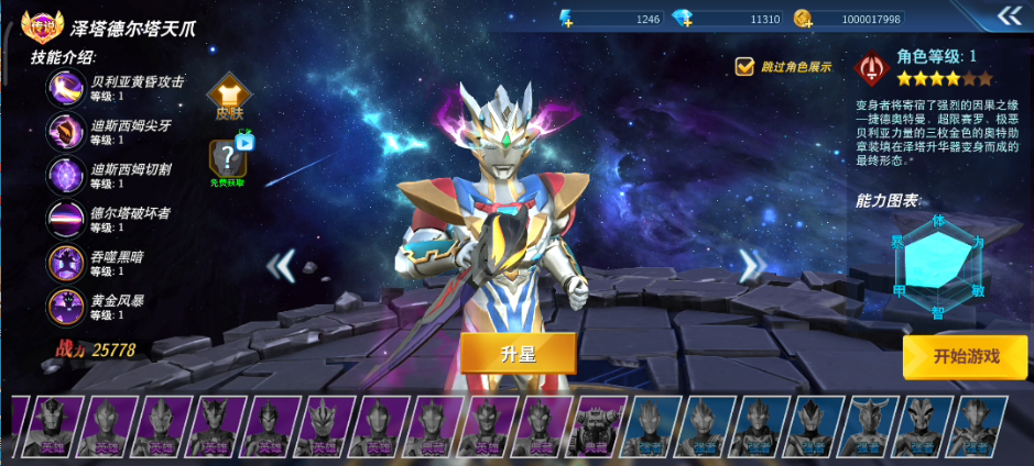 捷德、贝利亚限时好礼来袭,融合光与暗之力,觉醒泽塔最强形态。贝利亚奥特曼碎片首次开放大量获取,升星即可解锁更强战力。