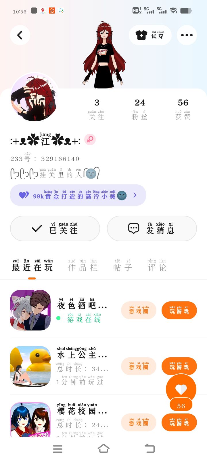这个是我的小号,有时候在线。如果我大号不在线的话,那就来小号找瓦丶