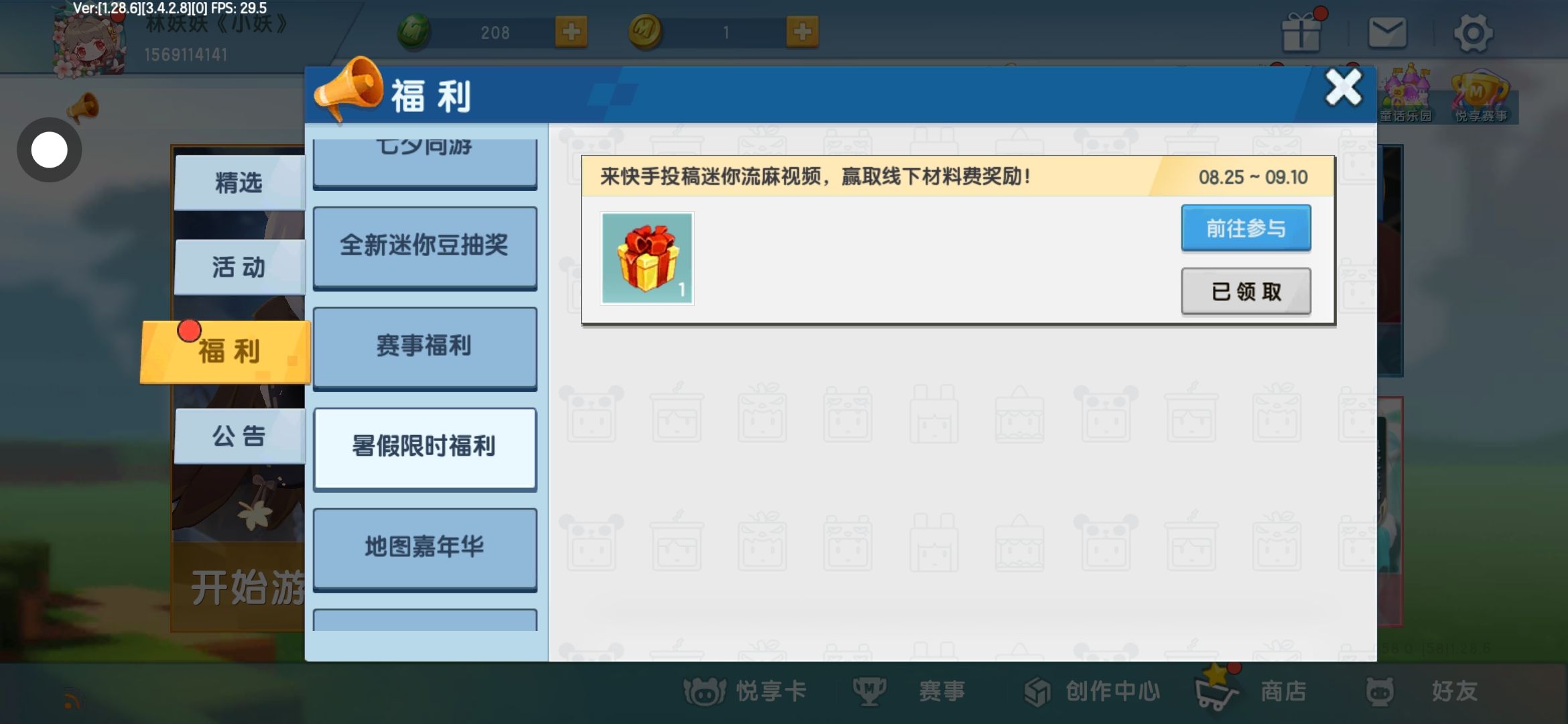 迷你世界礼包里的暑假限时福利里的惊喜礼包大家去领一下吧,运气好的,说不准弄抽到永久皮呢