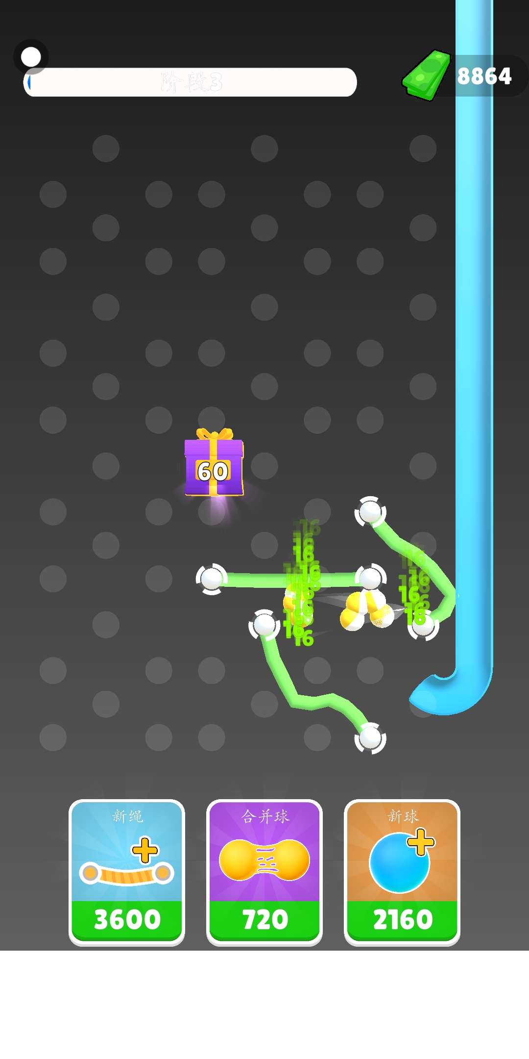 通过在橡胶上弹跳球来赚钱! 创建自己的循环以赚取更多, 添加并合并球以增加值