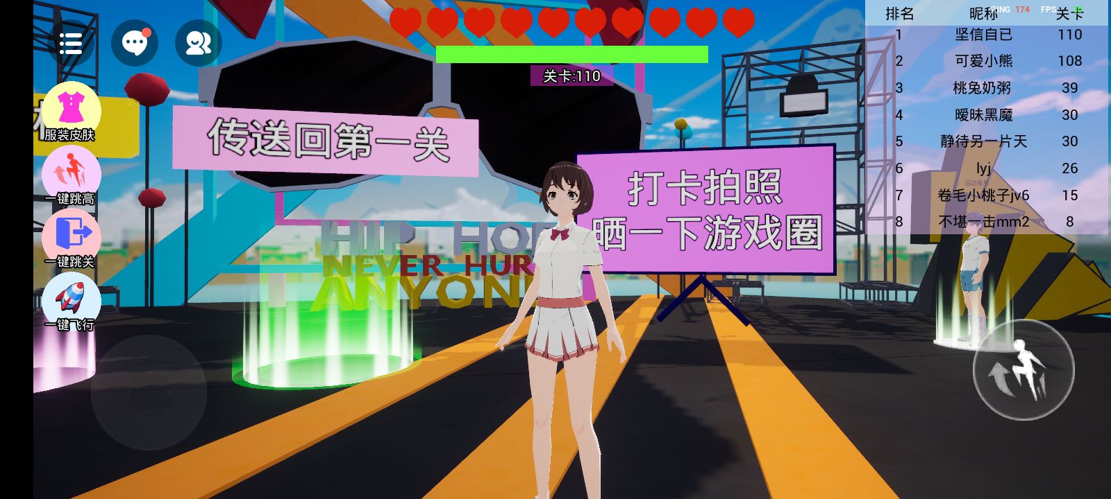 卡关成功和队友一起玩,太开心了,就是有的很难,我一次都没掉下去,一个爱心都没掉,你们说我厉不厉害?