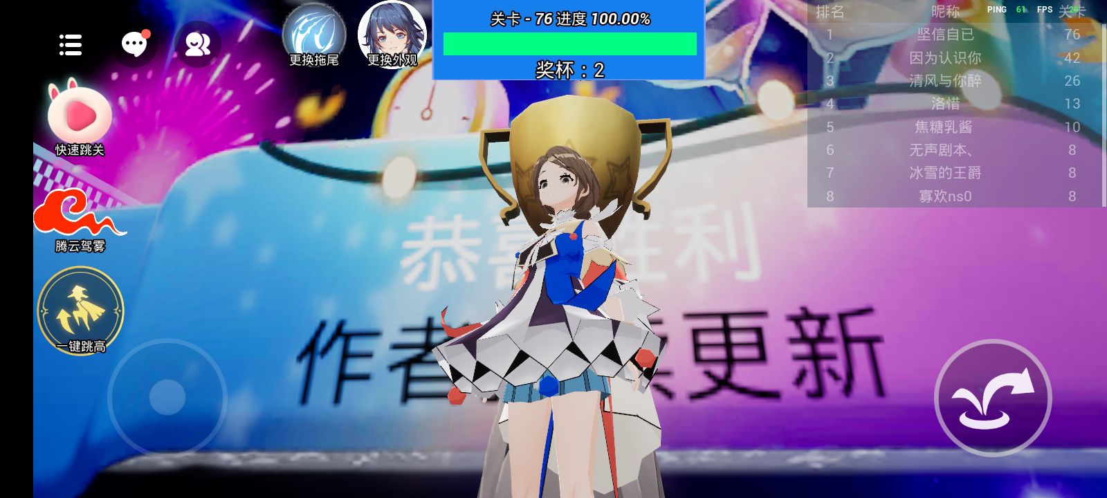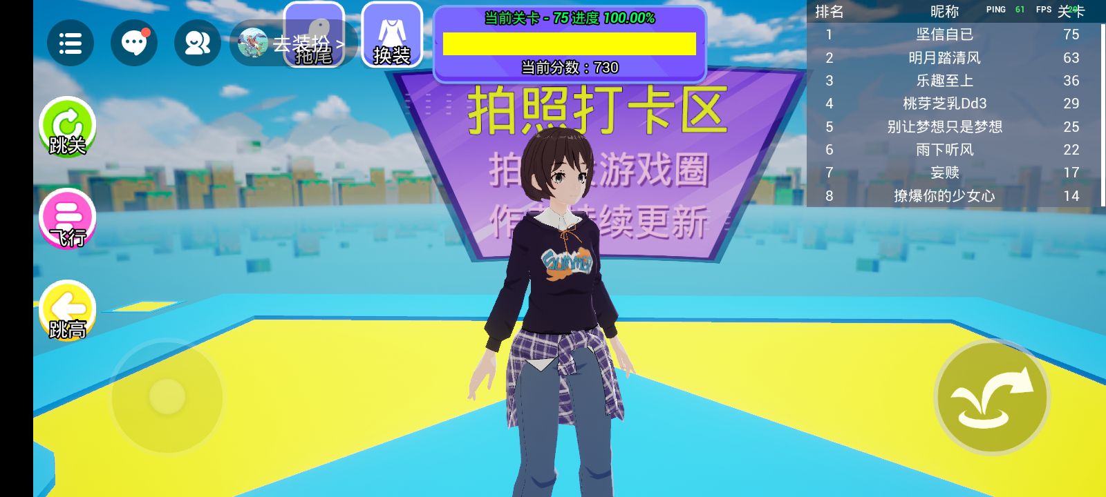 这关太好玩了,飞一直飞都没有掉下去,掉下去我就不能飞了,就只能慢慢的跑酷