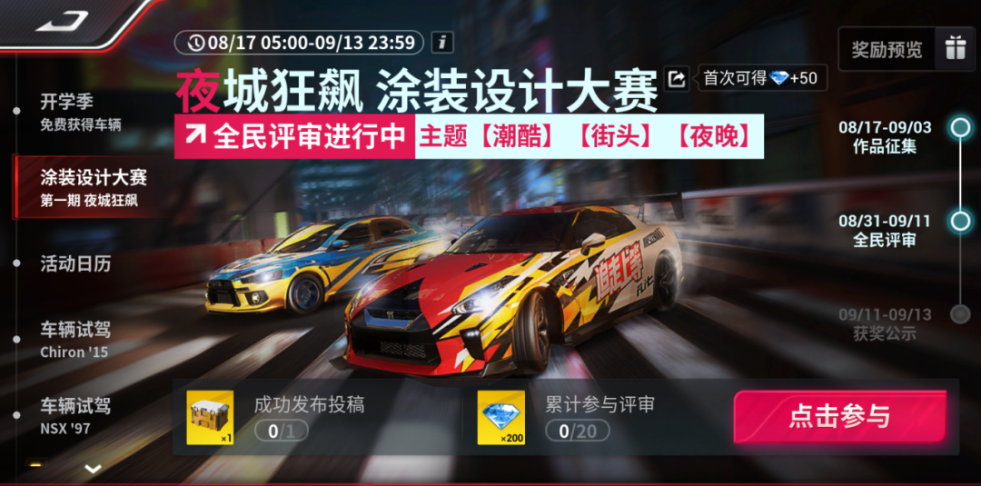 3.夜城狂飙涂装设计大赛:评审期即将于8月31号开启!人人都是评委,请为喜欢的作品投票支持~