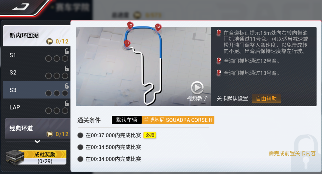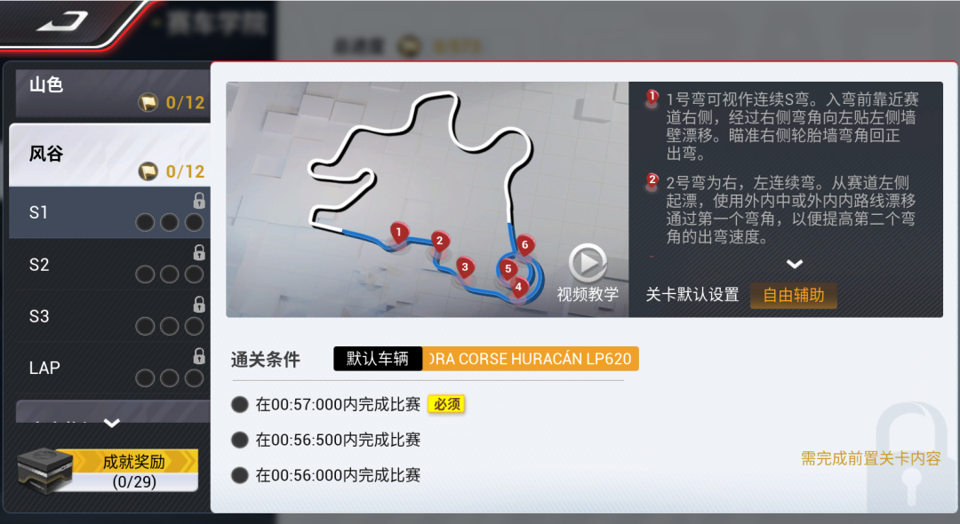 1)赛车学院阿尔卑斯风谷S1关卡,因道路存在颠簸,优化完成条件 。