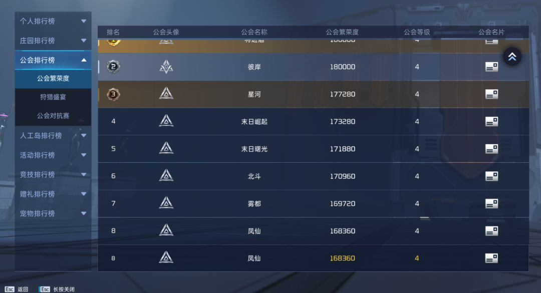 『重启测试』期间繁荣度上榜的凤仙公会