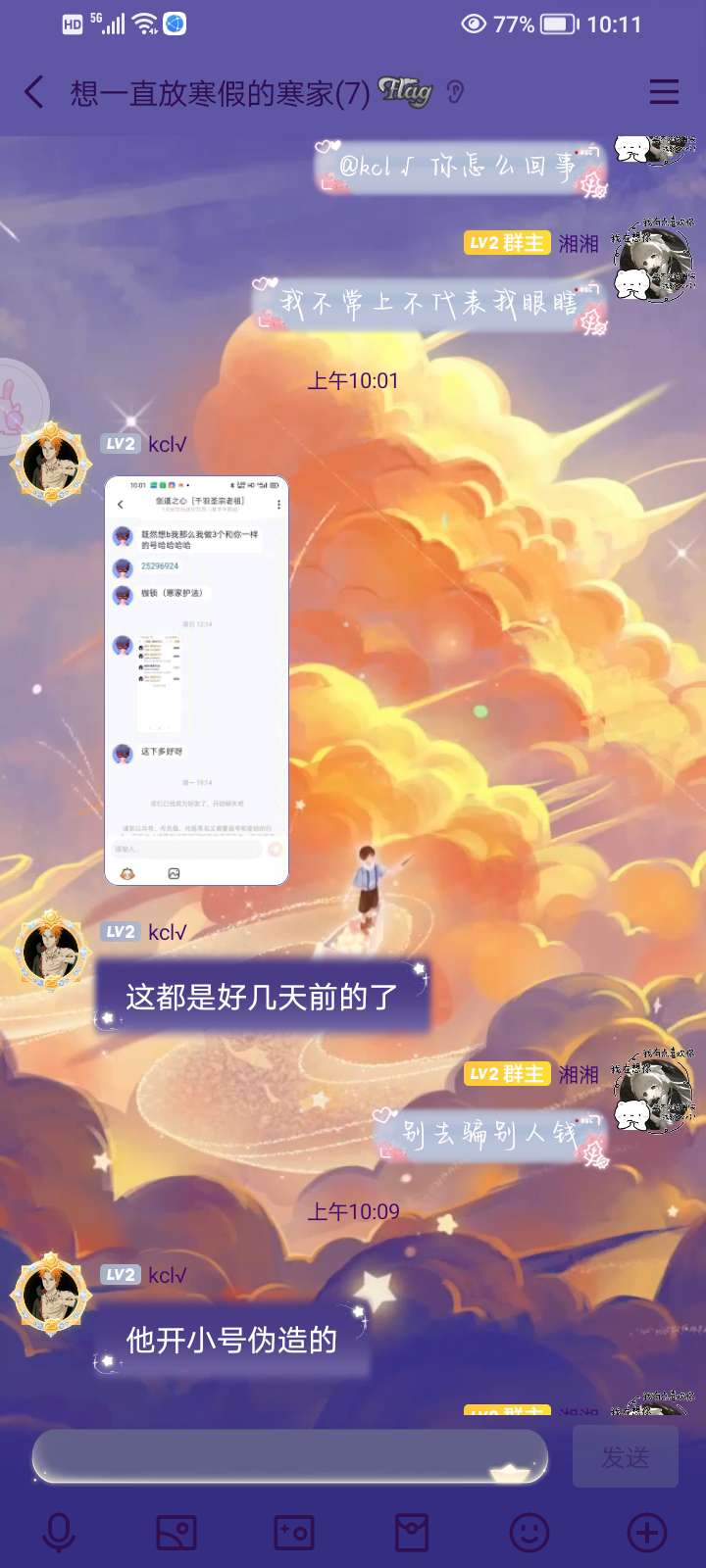 就是说啊,这是我发了带声音的第二个帖子,第一次发呢,是因为有个人,录屏发了我阁里的一个视频到了游戏圈,里面有声音,说要把我阁里所有人的号都封掉,我作为怡红院的阁主,我肯定是要回击的。