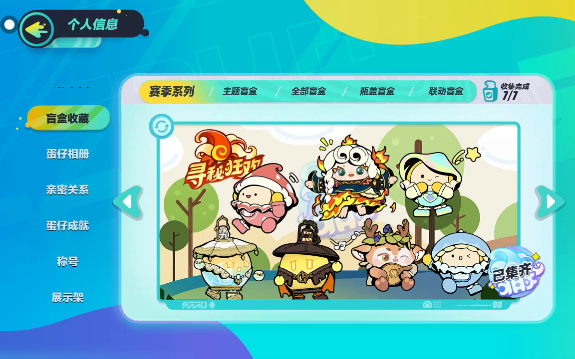 找蛋搭子成为我的蛋搭子皮肤手册,蛋币都安排上,嗯,这里我说一下有两个主题盲盒,我没有得到,因为那个时