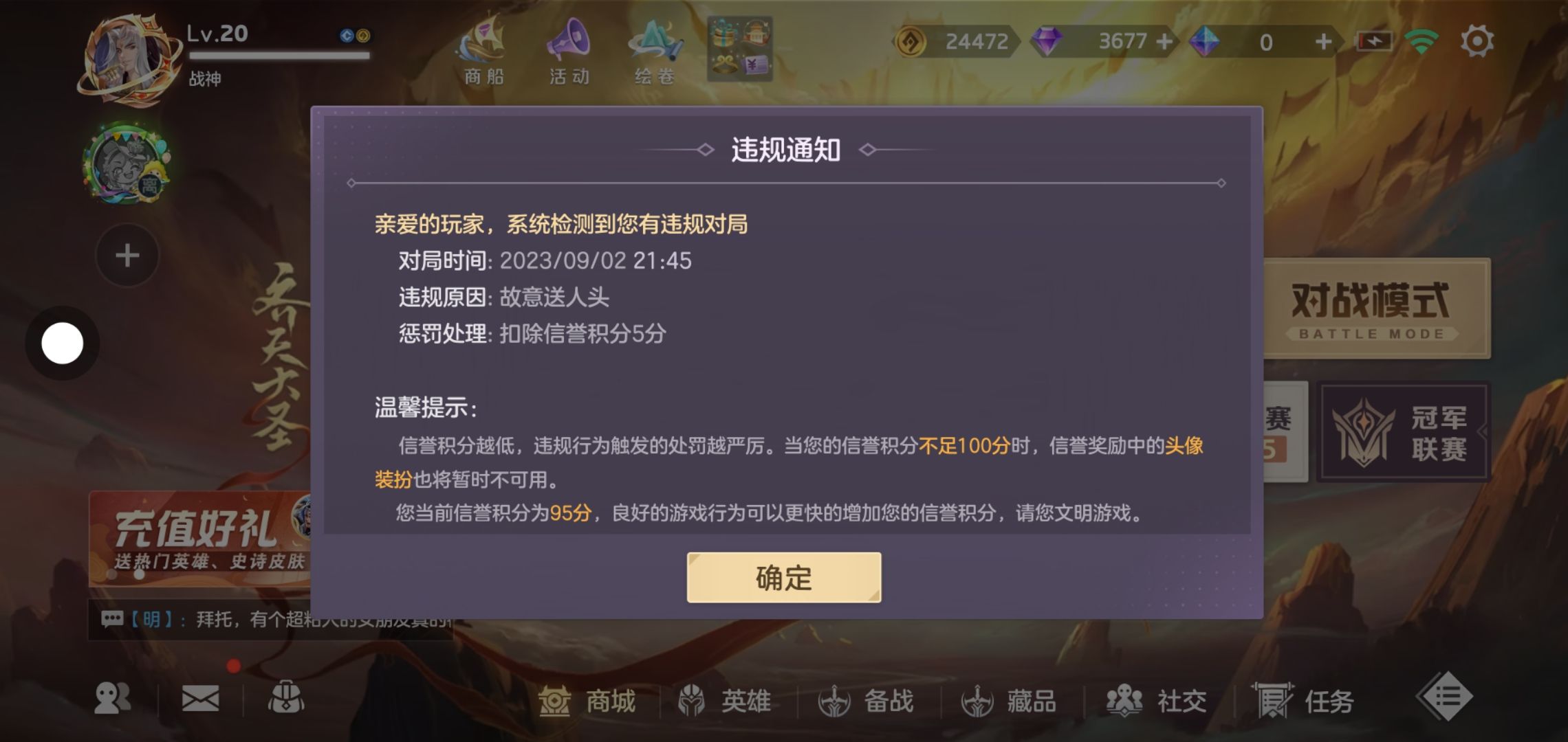 我就没有守住家队友直接举报我,真服了还举报成功