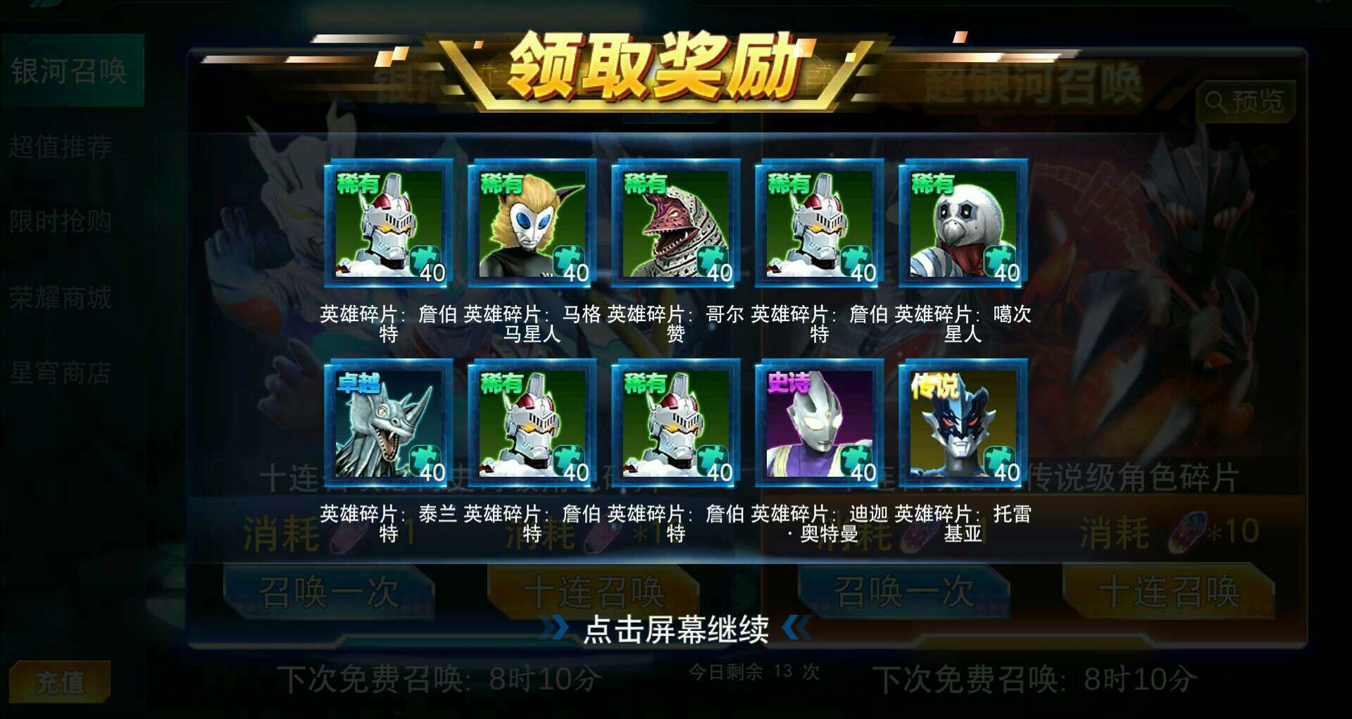 《真·超银河十连抽召唤》攒了几十天钻石来了两发超银河十连抽给我出个这,第一次十连抽详情看上一个帖子