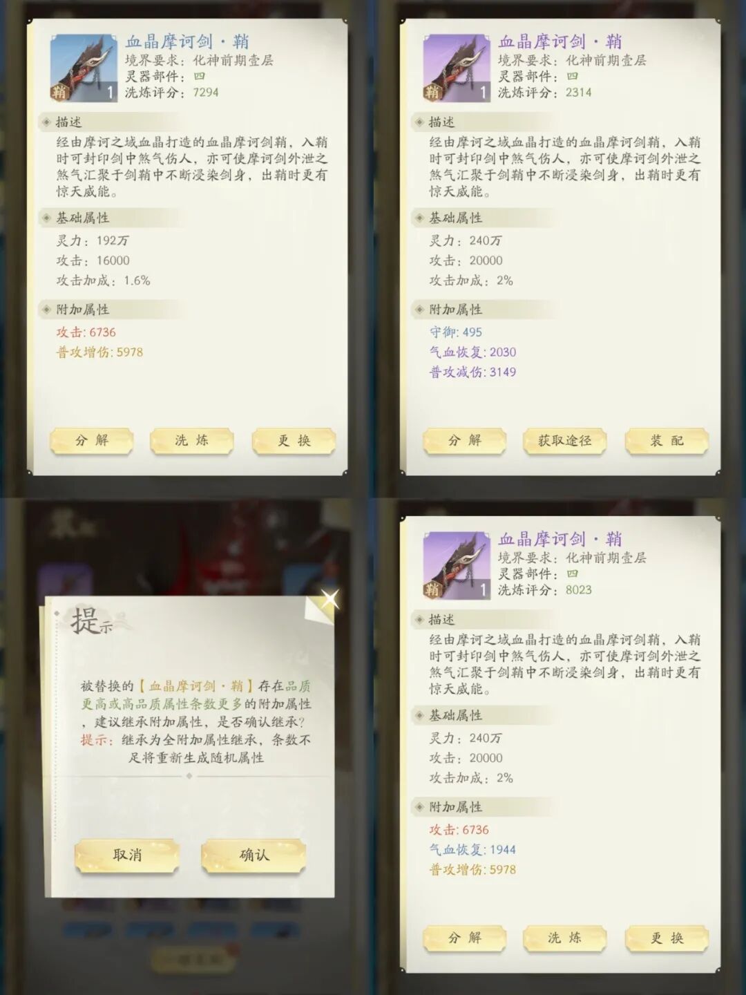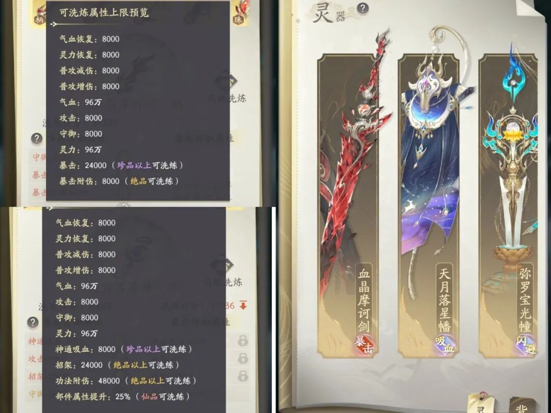 3. 灵器可以继承低品质的属性(这是我们省洗灵石的关键)。