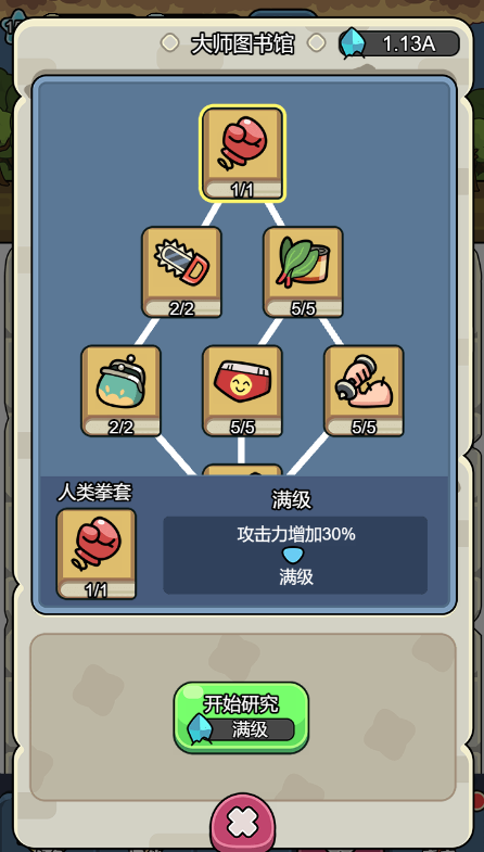 研究玩法中,可以消耗水晶进行研究,研究需要时间,即使离线状态,研究也不会停止。可以观看广告减少30分钟研究时间,或消耗100钻石,立刻完成研究。