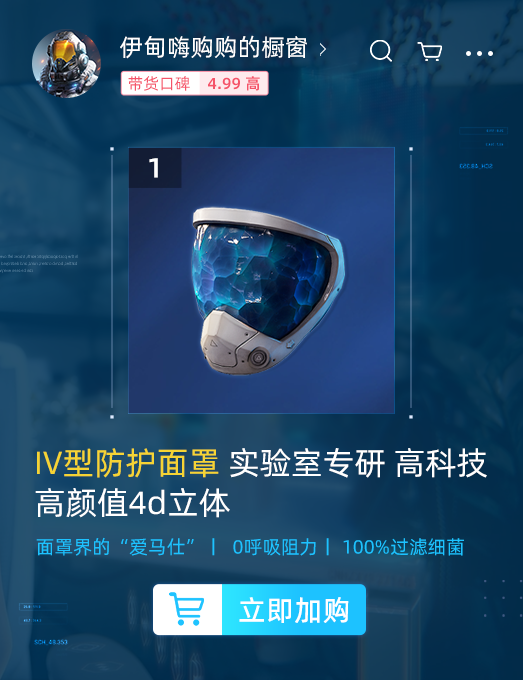 1号链接商品,是2112年家喻户晓、人手必备的IV型防护面罩!想在感染中活下来!购它!