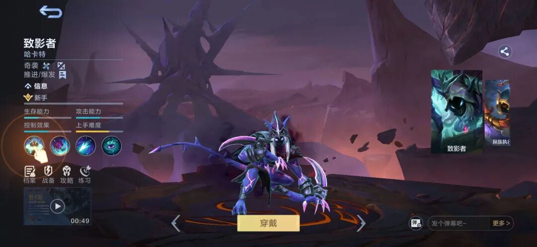 哈卡特的大招黑夜降临:就是发动黑夜效果,使所有敌方英雄可视范围降低且失去所有友军的视野,持续3.5秒。同时提高自己10%攻击速度和65%移动速度,持续8秒,黑夜降临时哈卡特会获得一把利刃,这不妥妥就是举着黑色大镰来索命的死神吗?啊,娜娜感觉人要无了~~~