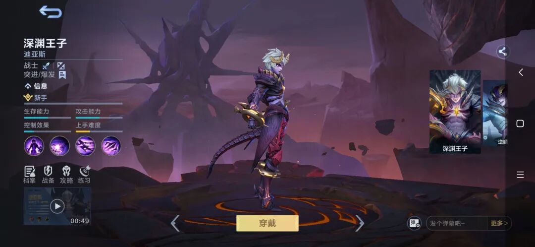迪亚斯的大招深渊一击:短暂蓄力后向前方打出毁灭一击,对路径上的敌方目标造成650点加成目标已损失生命值20%的物理伤害,并减速55%,持续0.8秒,作为爆发型战士,适合突进留人。