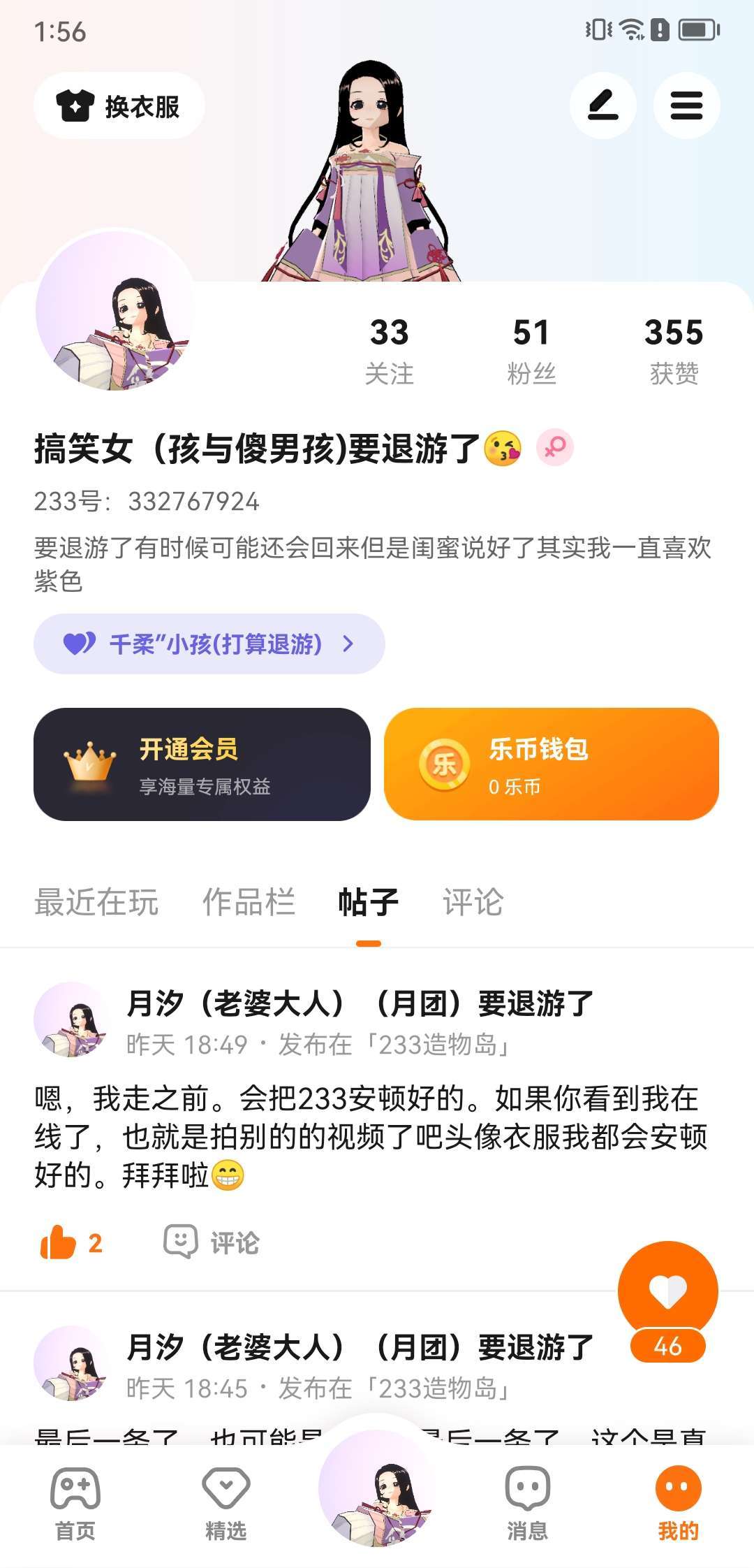 嗯,我走之前。会把233安顿好的。如果你看到我在线了,也就是拍别的的视频了吧头像衣服我都会安顿好的。拜拜啦😁
