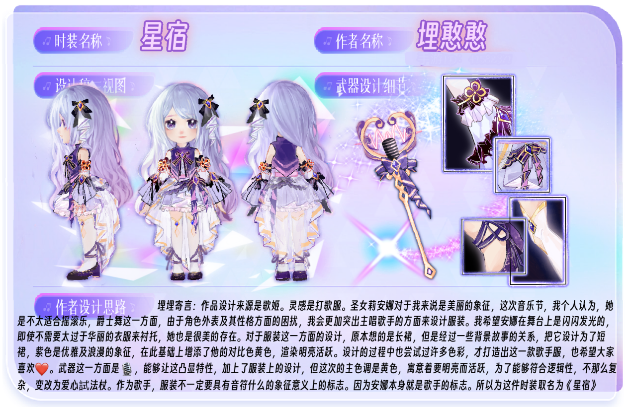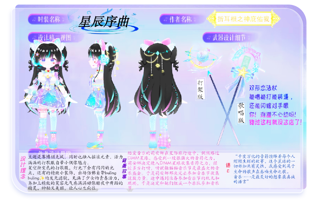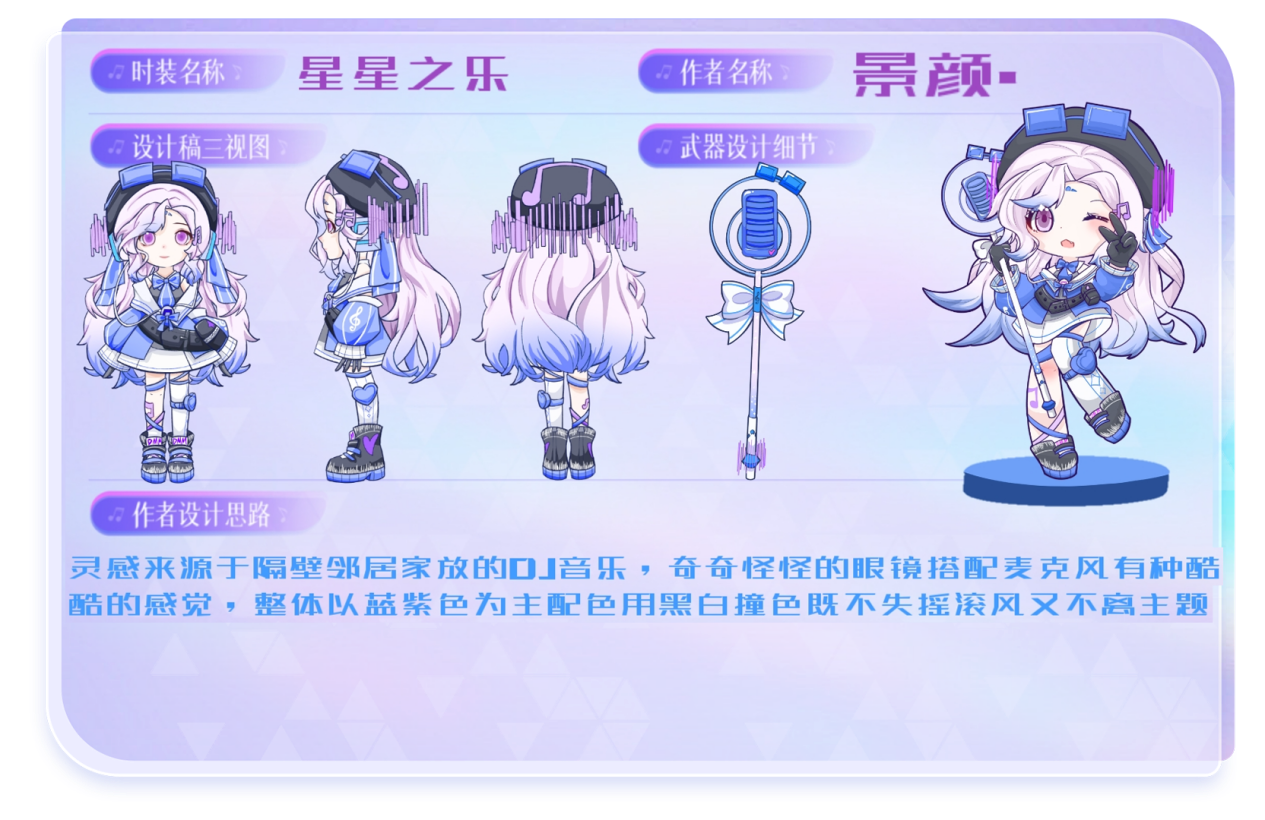 官方评审团通过大赛主题、角色锚点、角色人设、设计理念、品质把控及实际开发可行性等维度进行综合评估,再次审核了所有获奖作品,并结合玩家投票排名数据,从中选出了3个最优方案,授予“明星创意奖”。