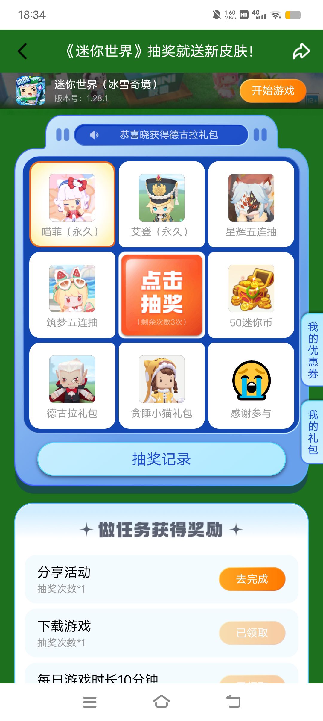 什么?做任务抽奖,就可以送新皮肤,快来抽奖