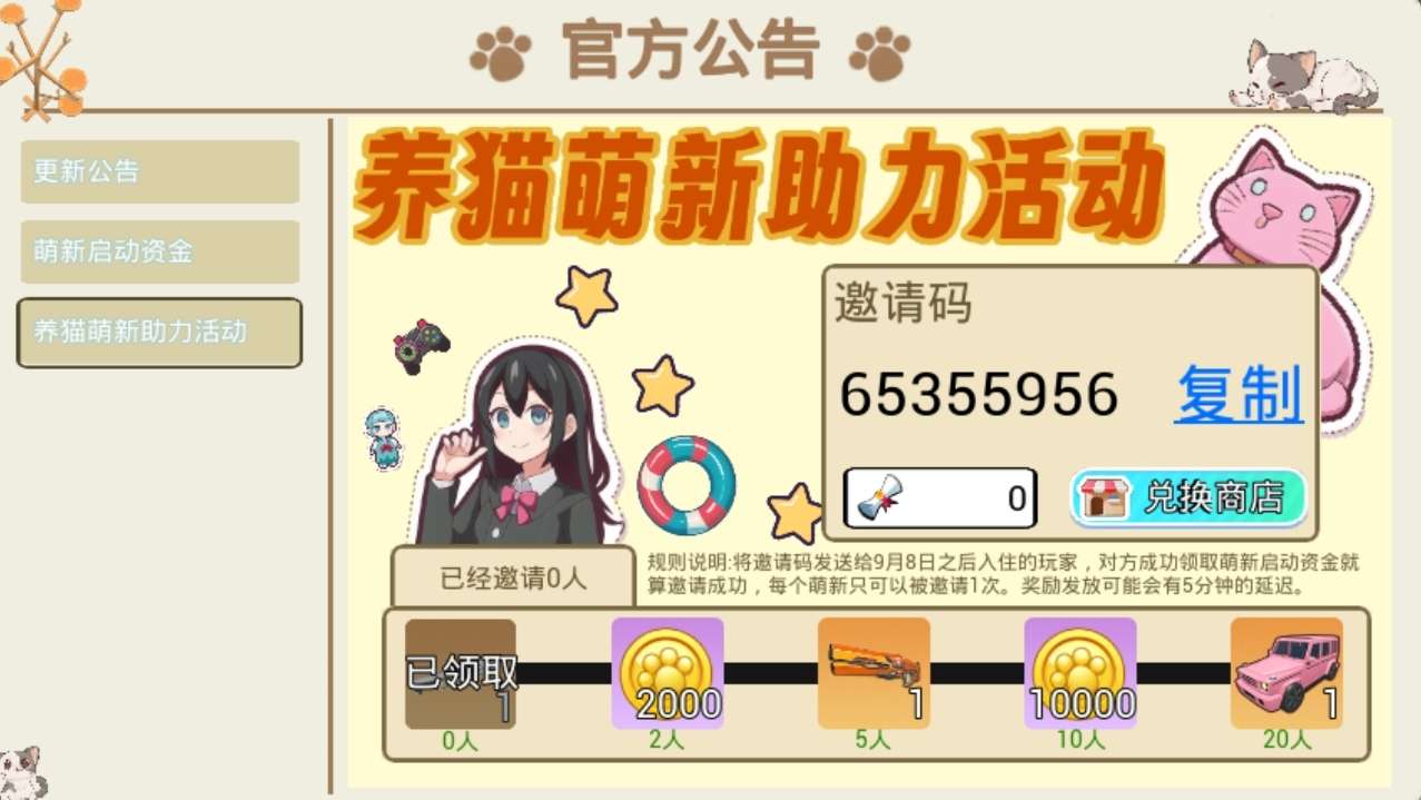 填写邀请码可以领2000猫币哦!