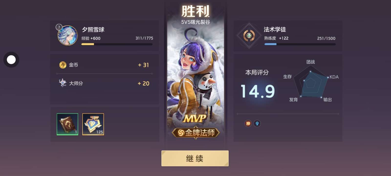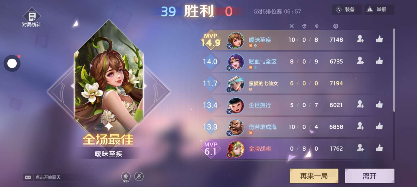 一局游戏直接拿下MVP好吧,而且还是小号