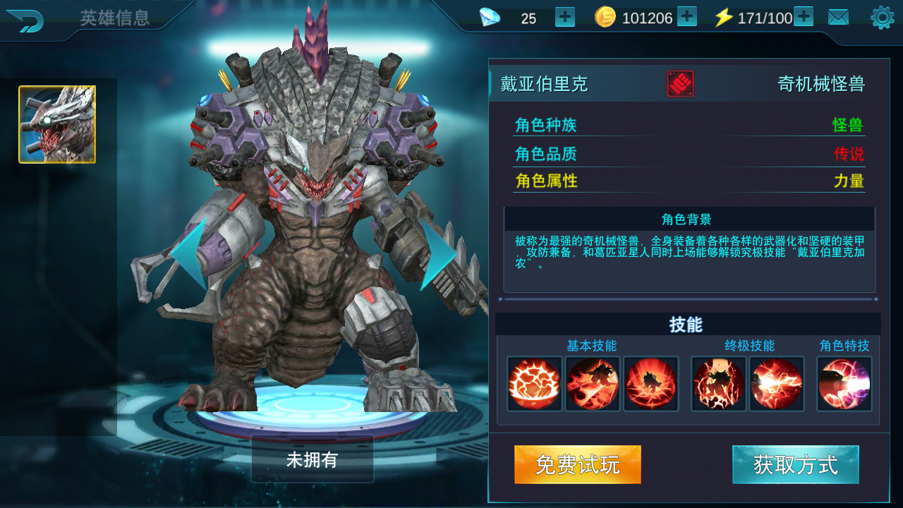 全新最强机械怪兽——戴亚伯利克正式上线!喜欢的小伙伴可以自由选择该角色