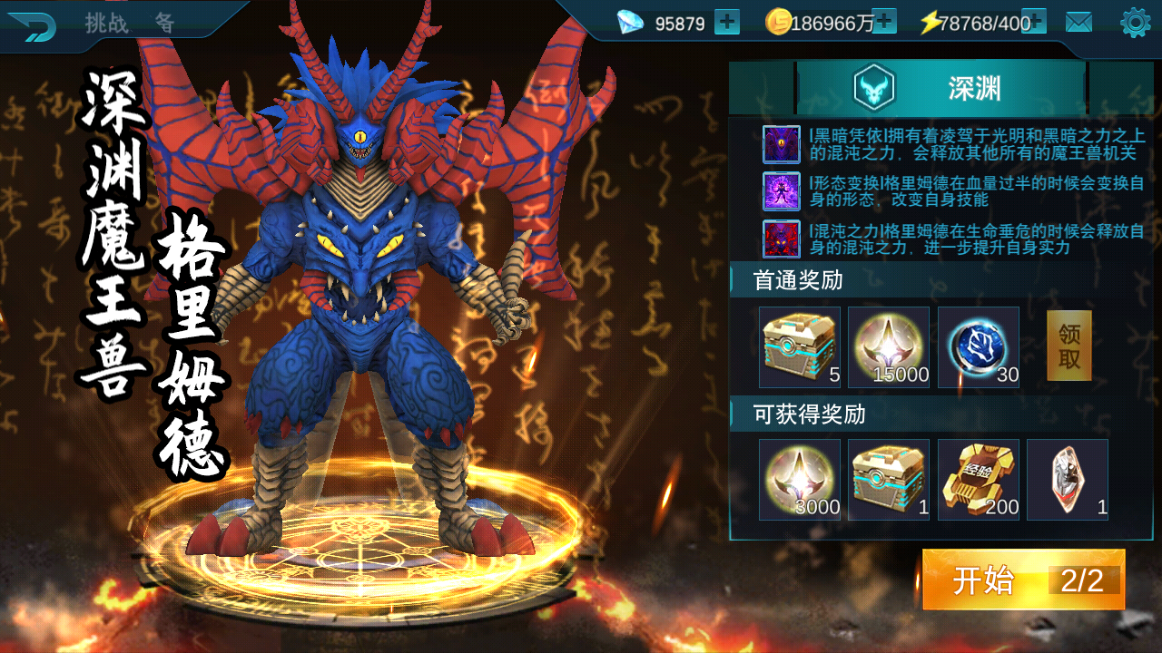 魔王兽挑战新增深渊模式,战胜格里姆德可得全新觉醒材料