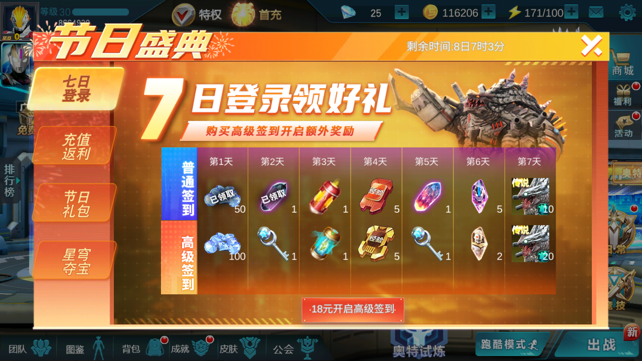 戴亚伯利克签到送;传说特利迦限时返场;特利迦强力型形态限时购买