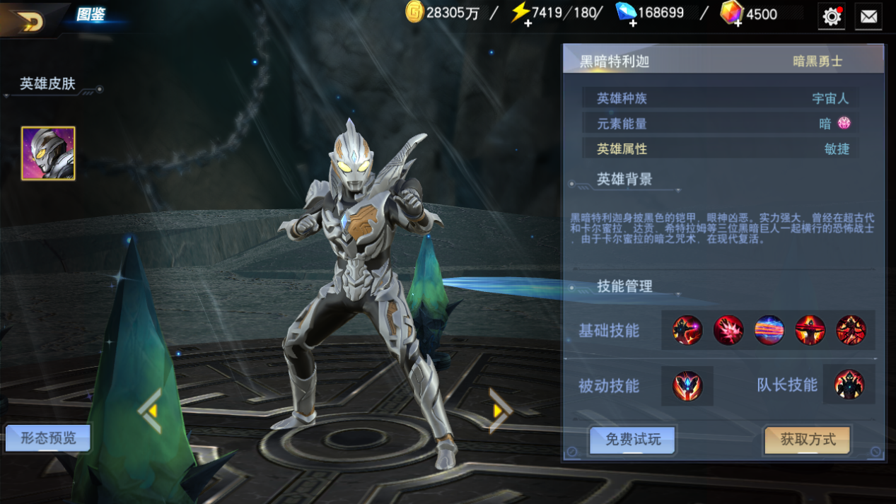 终极闪耀赛罗专属装备、专属变身器限时获取中;传奇再临,玩家可自由选择闪耀迪迦、闪耀特利迦进行角色抽取
